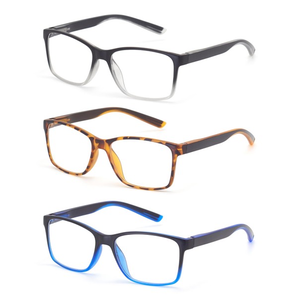 Goosen Gracious 3 Pack Reading Glasses for Men Large Spring Hinge Readers Blue Light Blocking Computer Eyelgasses, Black-Blue Black-Tortoise Black-Gray 2.0 x