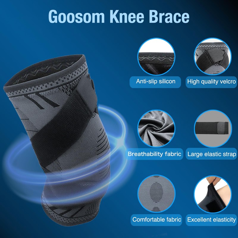 Goosom Knee Support Adjustable (1 Pair) Knee Support Sports Elastic Unisex Knee Brace Breathable Non-Slip for Basketball Running Gym K51B M