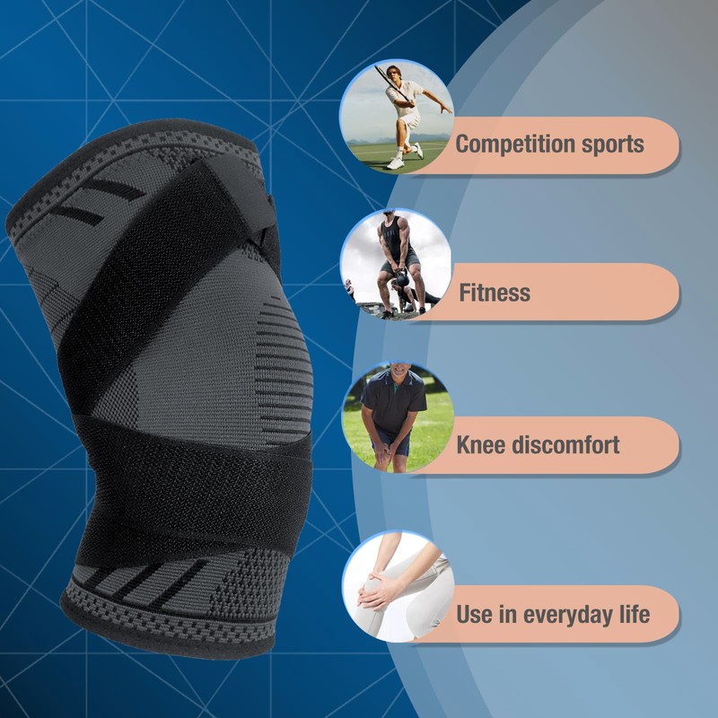- Effective relief and support: support around the kneecap to improve the stability of the knee and relax the tendons. It is ergonomically designed to reduce knee strain and play a role in cushioning and decompression. Provides 360 degree support and protection for injured ligaments, tendons, joints and muscles.