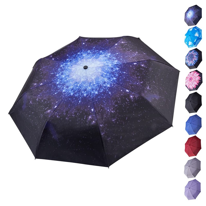 The folding umbrella is made of 8 reinforced ribs protect it from flipping over or breaking easily in strong wind and heavy rain.