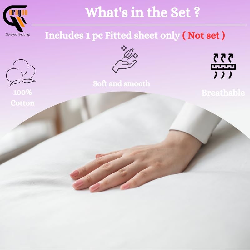 Gorayoo Bedding 100% Egyptian Cotton Queen 60"" x 80"" Fitted Sheet Only 1000 Thread Count 12 Inch Drop Pocket Soft Fitted Sheet Hotel Class Premium -White