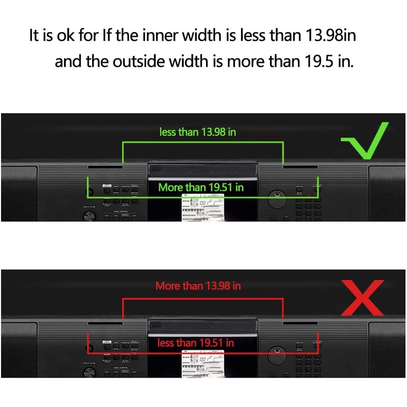Meanwhile.It is ok for If the inner width is less than 35.2cm / 13.9 in, and the outside width is more than 49.5 cm / 19.5 in. If the two requirements can't be met at the same time, it will not be compatible!!! For full-slot models, slots width is than 49.5 cm (19.5 in) can be used!!!