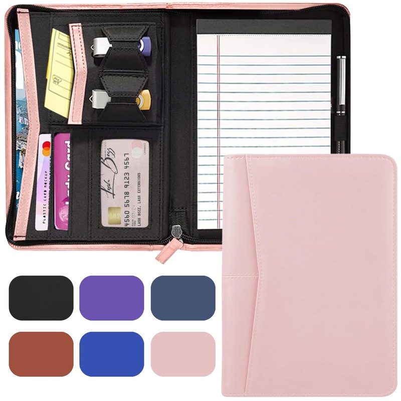 Gorbado Small Portfolio Organizer, A5 Zippered Business Portfolio, Junior Padfolio Folder Binder for Women,5 x 8 Writing Pad Included,Pink