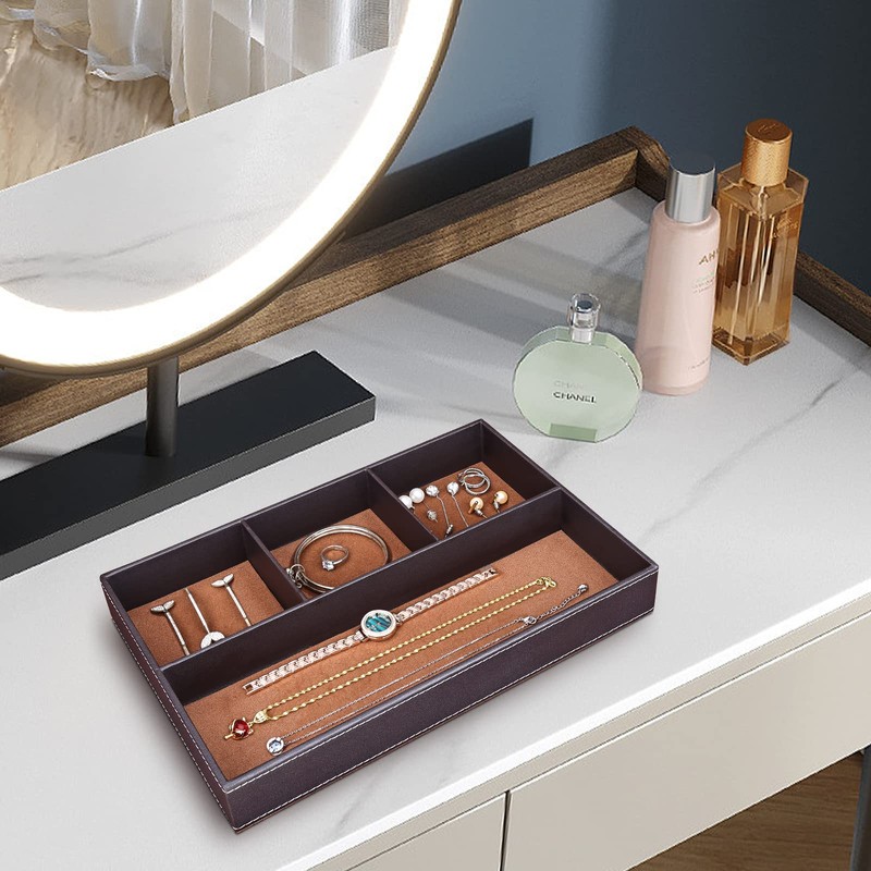 • Four Compartments for Perfect Organization: With four thoughtfully designed compartments, our nightstand tray allows you to neatly store your sunglasses, socks, ties, watches phones, wallets and showcase your rings, bracelets, earrings, and other precious accessories.