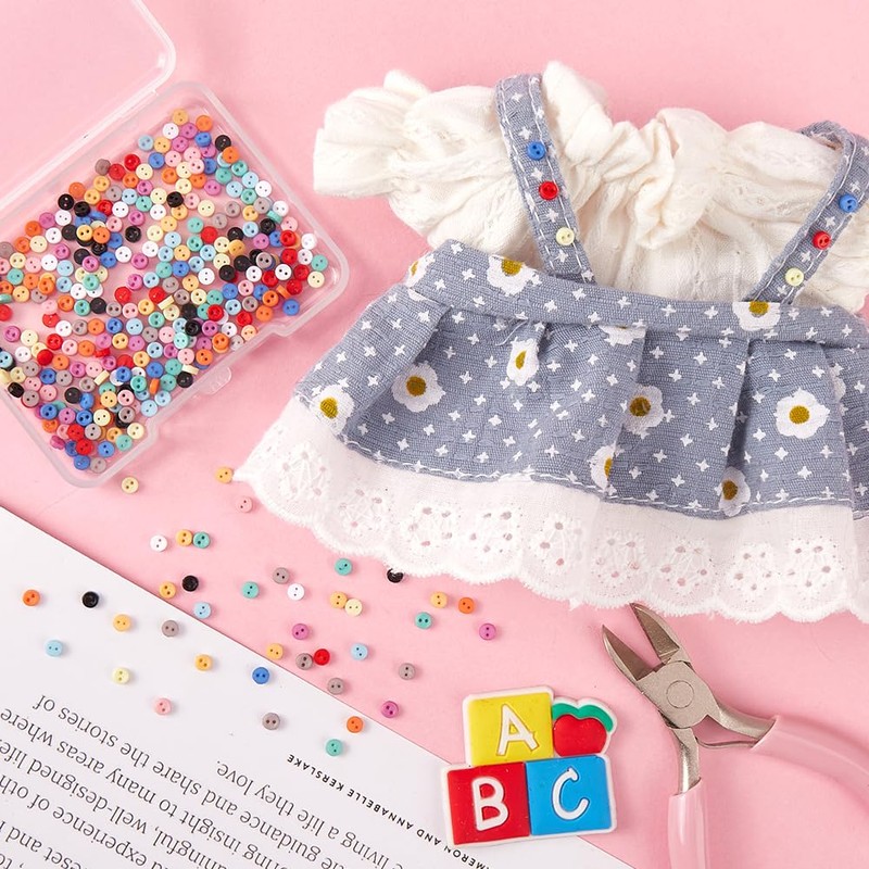 - [360Pcs Resin Buttons]: Package includes 360pcs mini resin buttons, each is 0.12inch(3mm) in diameter, 0.12inch(3mm) thick, hole: 0.5mm. Comes with 1pc plastic box to storage: 6.8x5.2x1.1cm.