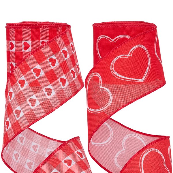 • Valentine's Day Ribbon: The wired edge happy valentine's day theme ribbon are composed of red heart pattern ribbon and red plaid edge love ribbon, is full of the joyful atmosphere and can meet the needs of valentines day decoration and wrapping needs