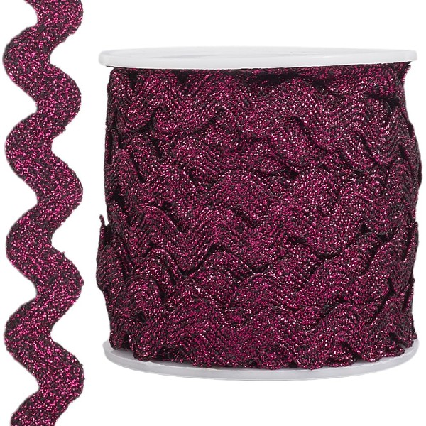 GORGECRAFT 16.5 Yards Metallic Rick Rack 0.6 Inch Glitter RIC Rac Trim Christmas Zig Zag Sparkly Wave Bending Fringe Ribbon Wavy Edge Fabric for Sewing Wedding Dress Gift Wrapping, Medium Violet Red