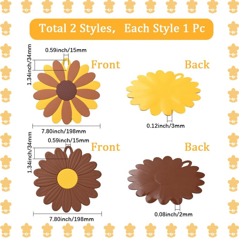 GORGECRAFT 2 Stück 2 Stile Sonnenblumen Getränkeuntersetzer 19.8cm Blumen Bechermatte Wärmeisolierung Waschbar Wiederverwendbar Silikon Kaffeetassen Untersetzer Becherpolster Tischplatten Schutzmatten