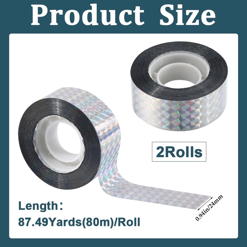 262Ft x 2 Rolls Bird Ribbon: Comes with 2 rolls bird tape ribbon, square shape pattern, each roll is 262 feet x 0.95 inch(80m x 24mm), 525 feet (160m) in total