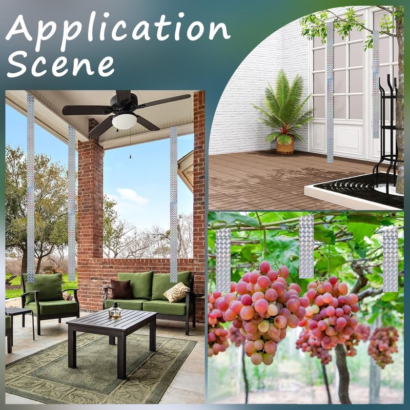 Double Sides Ribbon: This bird ribbon tape is high reflective on both sides, will sparkle in the sun, create a metallic noise as it flaps in the wind, effectively keeping birds away from your crops and house