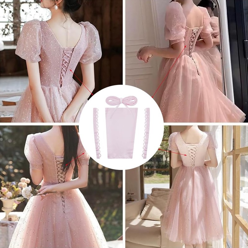 GORGECRAFT 4Pcs Satin Corset Kit Women Wedding Dress Zipper Replacement Adjustable Corset Back Kit Lace-Up Satin Ribbon Ties for Formal Prom Dress Strap Wedding Evening Gown Accessories Pink