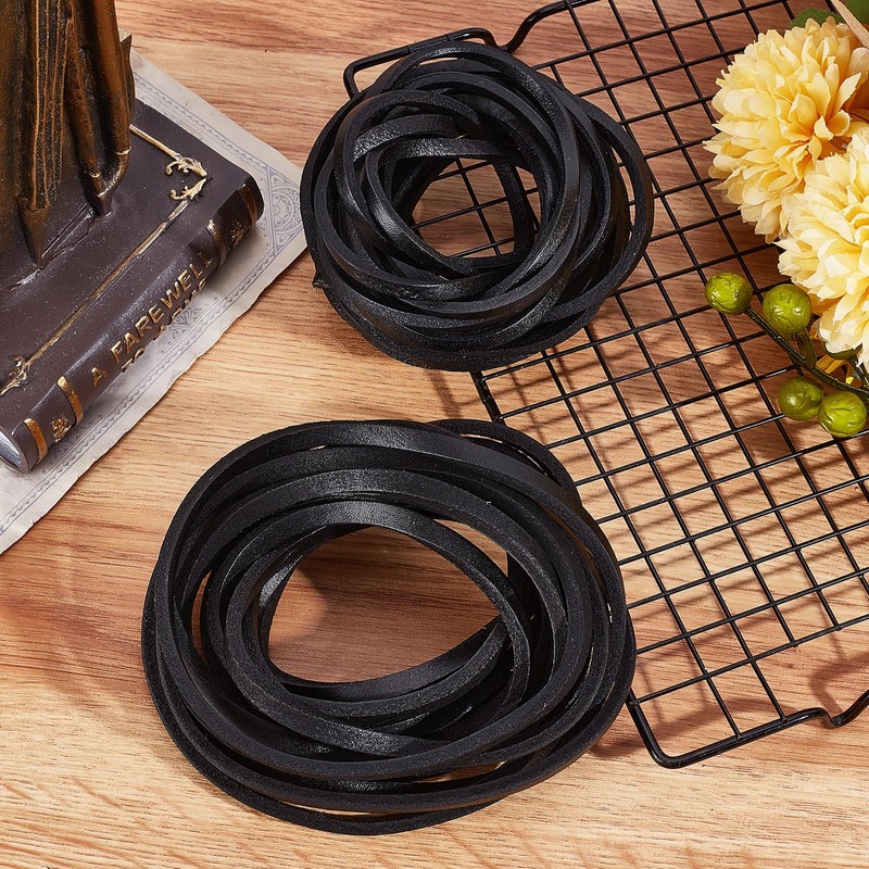GORGECRAFT 5.5 Yard Black Flat Genuine Leather Strips 5.5 mm Wide Cowhide Cord 4 mm Thick Shiny Leather Straps Braiding Bead Threads for Crafts Key Chain Making Handles
