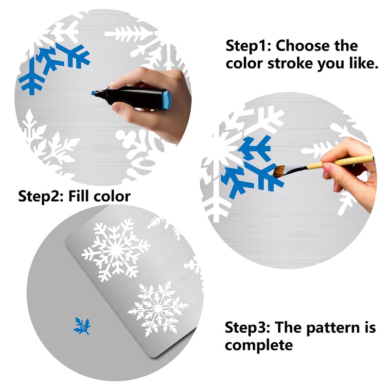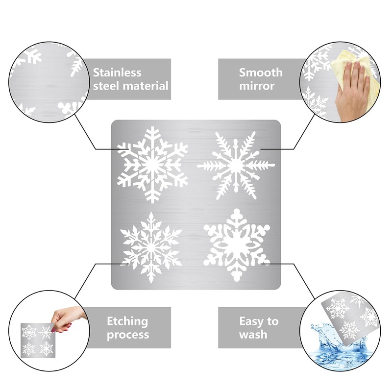 - 6.3 INCH SNOW STENCIL: Package include 1pc 6.3x6.3 inch mental snow theme template, which includes 4 types of knots, the size of them is about 2.4-3x2.6-3 inch.