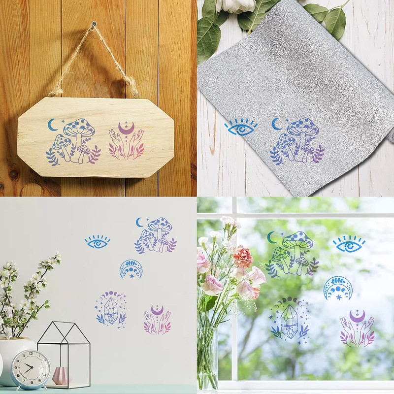 GORGECRAFT 6.3 Inch Mushroom Metal Stencil Eye Moon Phase Pattern Stainless Steel Cutting Stencil Template Journal Tool for Painting Wood Burning Pyrography and Engraving Home DIY Decoration Crafts