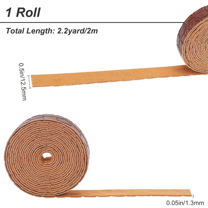 GORGECRAFT Crocodile Pattern Leather Strap Strip 1/2 Inch Wide 79 Inch Long Bump Texture Leather Belt Wrap Single Sided Flat Cord for DIY Crafts Projects Clothing Making Bag Handles(Coconut Brown)