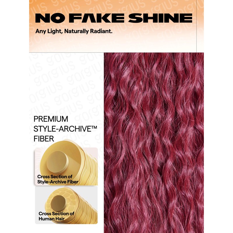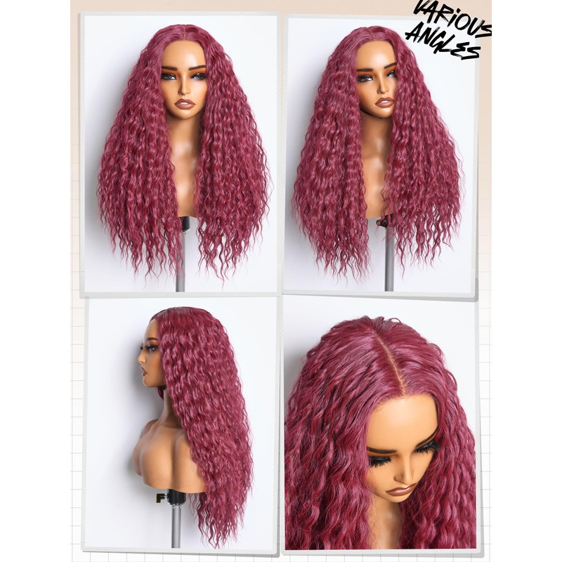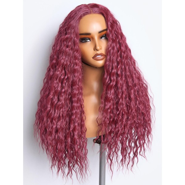 GORGIUS Burgundy Water Wave Lace Front Wigs Pre Cut Glueless Synthetic Long Wig Middle T Part 22 Inch