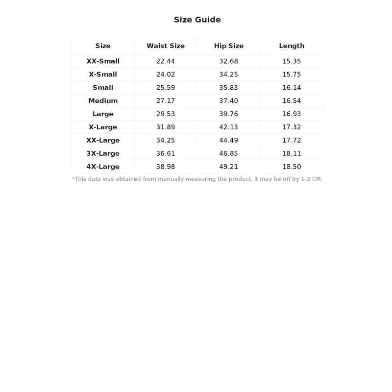 XS:Hip Size:34.3IN,Length:15.7IN,Waist Size:24.0IN