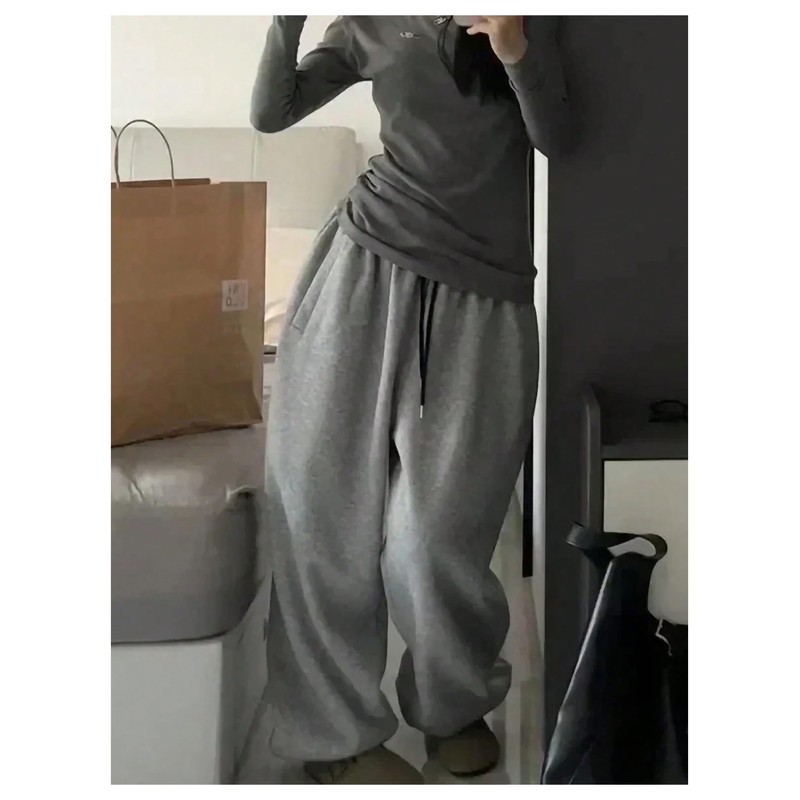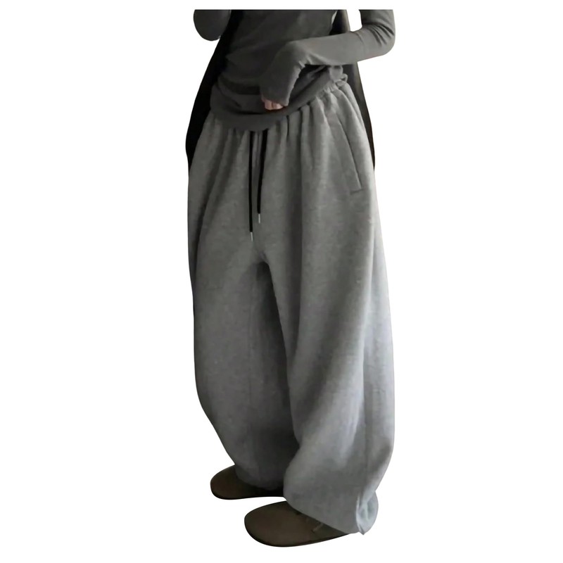 GORGLITTER Women's Baggy Sweatpants Y2K Drawstring High Waisted Loose Long Pants with Pockets Grey Medium