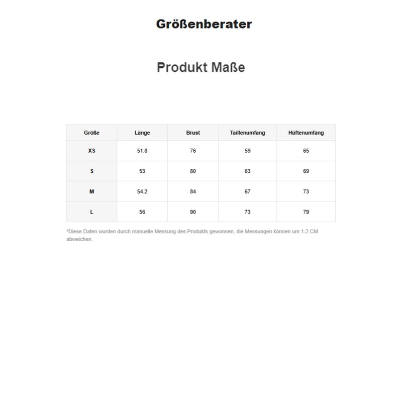 XS: Length: 51.8, Chest: 76, Waist: 59, Hips: 65