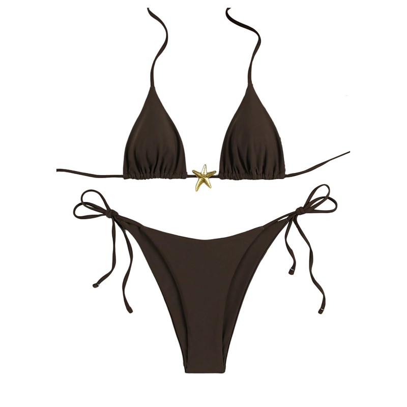 - Design with halter triangle top, string tie bottom, star metal, 2 piece swimwear for women. Great for fitting wear and it can thoroughly show off your stunning curves