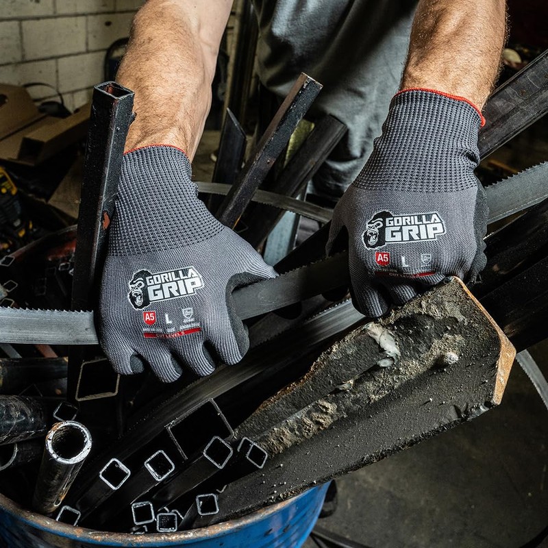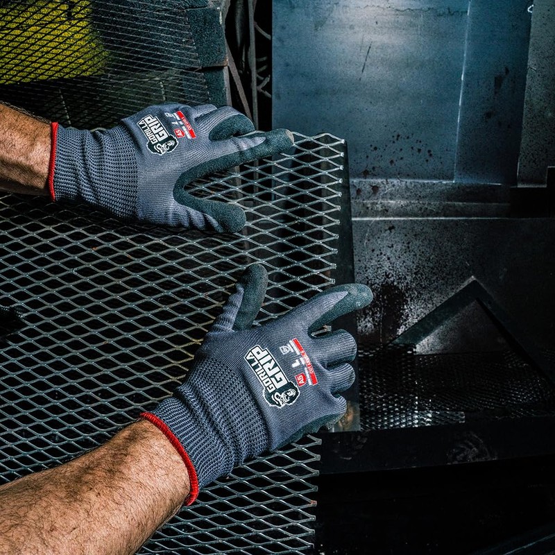 Gorilla Grip A5 Cut Resistant Work Gloves, Touschreen Compatible Safety Gloves, Breathable, Nitrile Coated, Grey - Large (12 Pack)