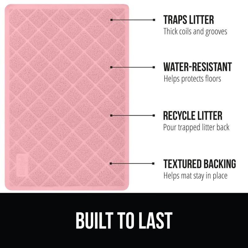 GORILLA GRIP Cat Litter Box Mat, 35x23, Water Resistant, US Designed Kitty Litter Trapping Mats, Easy to Clean, Scatter Control, Less Mess and Clean Floors, Kitten Supplies for Indoor Cats, Light Pink