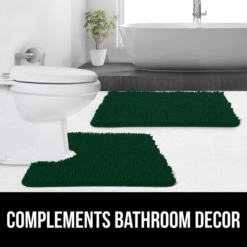 GORILLA GRIP GORILLA GRIP Plush Absorbent Shaggy Chenille Bath Rug Mat for Square Toilet Base with Rubber Backing, Machine Washable Rugs, Soft Microfiber Contour Mats for Toilets, Bathoom Decor, 22.5x19.5, Hunter