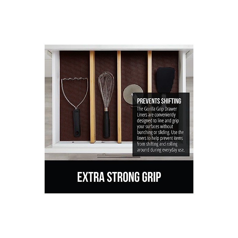 - KEEP ITEMS IN PLACE: thick and durable Gorilla Grip Drawer and Shelf Liners line your drawers and effectively helps to prevent items from moving and shifting around