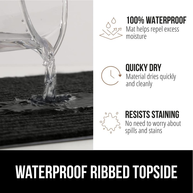 - WATERPROOF RIBBED TOPSIDE: ultra absorbent and 100% waterproof, the mat's surface helps to capture excess water and moisture; plus, premium fabric dries quickly and resists staining and fading for long lasting use