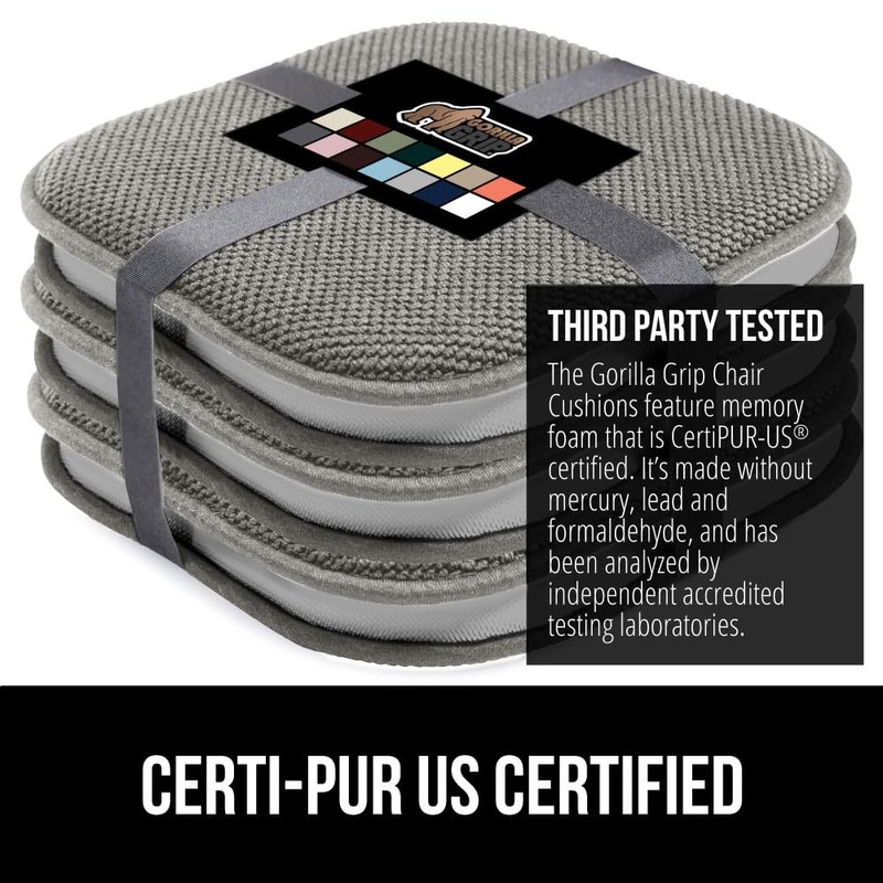 Gorilla Grip Memory Foam Chair Cushions, Comfortable Pads for Dining Room, Kitchen Table, Office Chairs, Stay in Place Backing, Comfortable Microfiber Seat Pad Cushion, Set of 2, 16x16, Gray