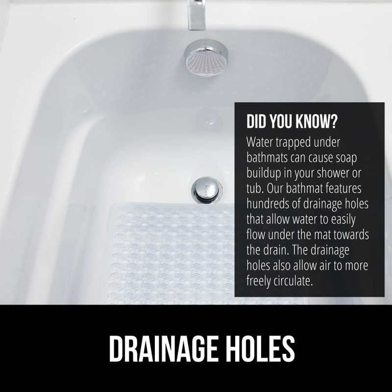 - Easy Water Drainage: hundreds of drainage holes allow for water to easily flow under the mat and towards the drain, helping to prevent water from sitting stagnant under the mat in your tub