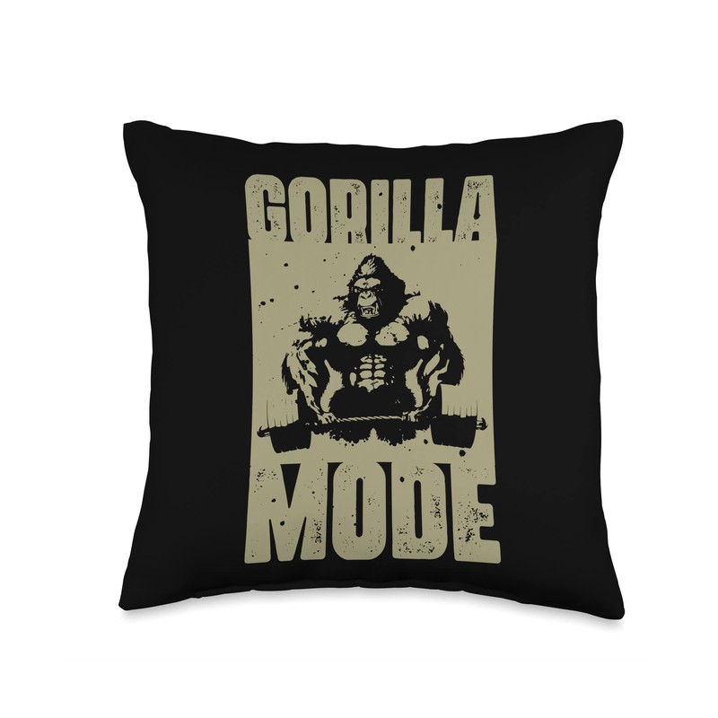 Gorilla Mode Weightlifting | Muscles Bodybuilding Beast Gym Throw Pillow
