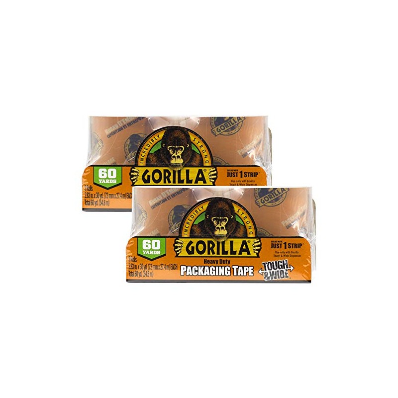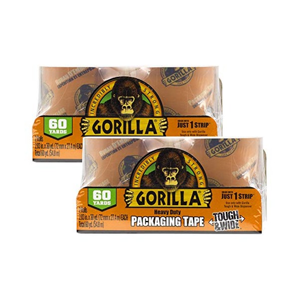 Gorilla Packing Tape Tough & Wide Refill for Moving, Shipping and Storage, 2.83" x 30 yd, 2 Rolls (Pack of 2)