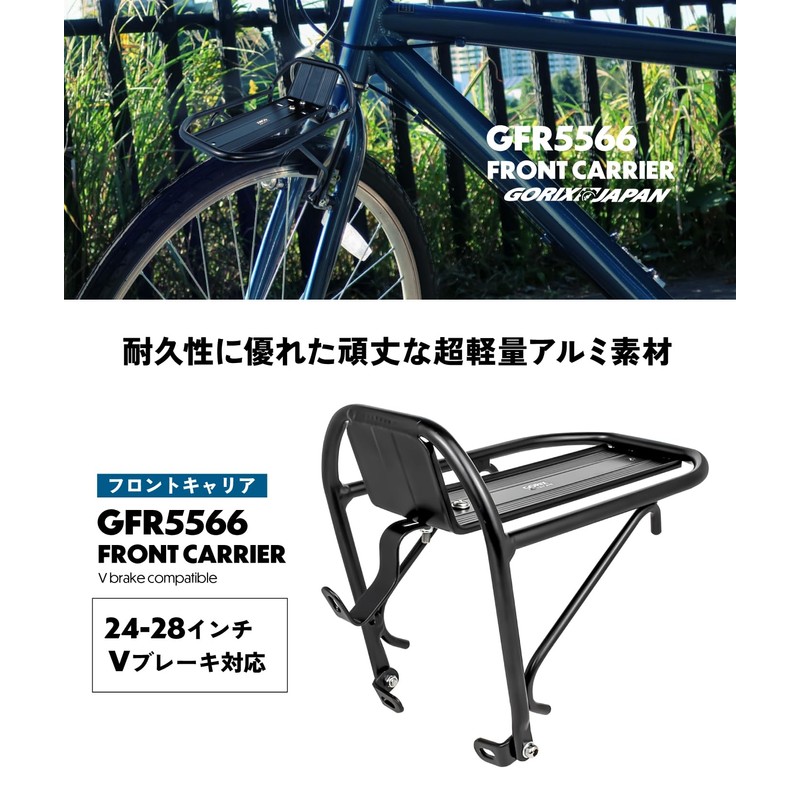 GORIX (GFR5566) Front Rack, Bicycle, Cargo Carrier, Front Carrier, Cross Bike, 700c, 24-28 Inches, Aluminum, Lightweight, Front Bicycle Carrier, Commuting, Touring