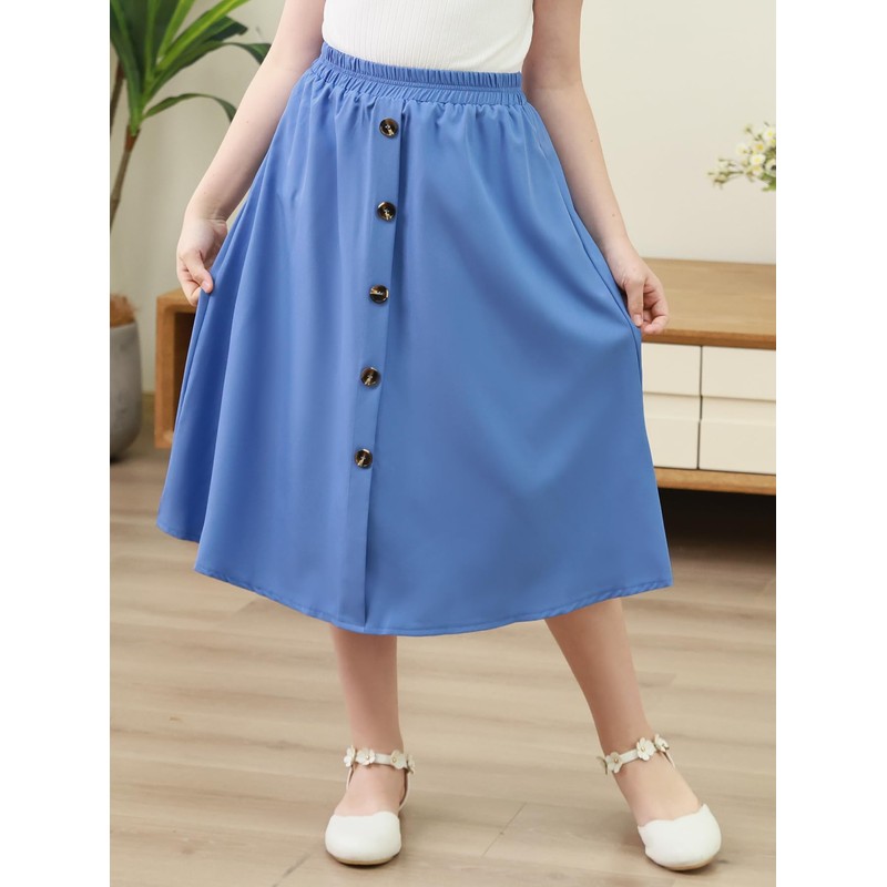 - Features: Cute and elegant casual summer style, classic button front design, with basic solid color. High elastic waist makes this pleated circle long skirt fit and beautiful. Flared swing aline silhouette, above calf length, no lined, two side pockets.