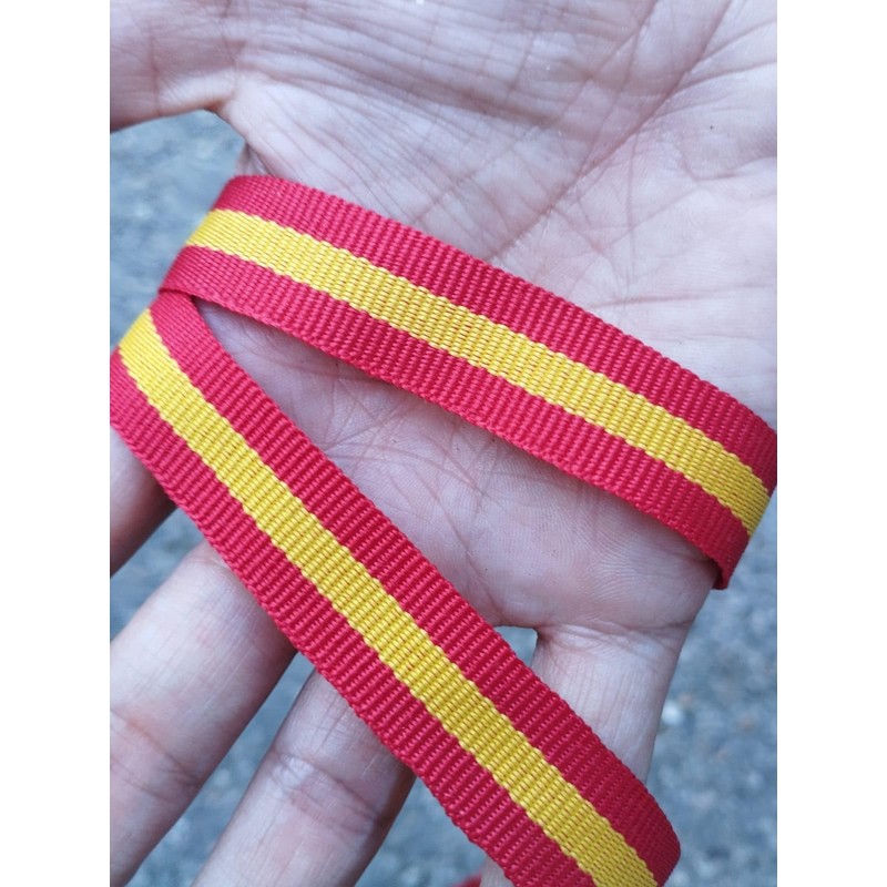 - This Spanish flag ribbon is perfect for decorating patriotic events and parties and shows your love for Spain everywhere. Measuring 5 metres long and 2 cm wide, this tape is long enough to cover large areas or cut into smaller pieces. This tape is made of high-quality materials and is sturdy and durable, so it can be reused on different occasions.