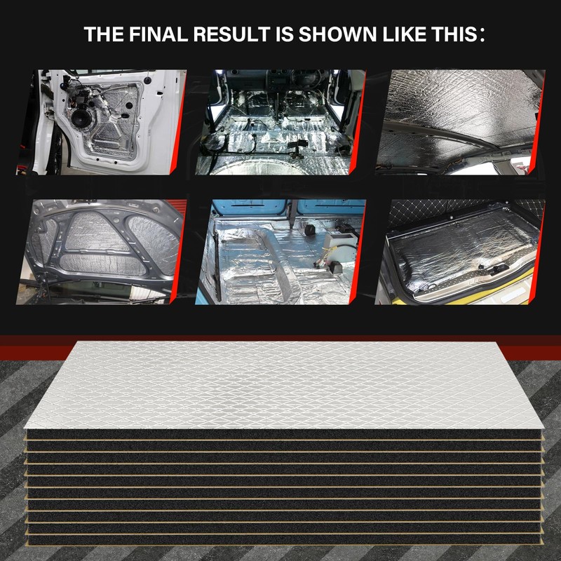 - Strong sound insulation and absorption performance. 100% New heat shield Car Sound Deadener, PE with aluminum material, Thickness: 5 mm. for creating a quieter and more comfortable in-car experience