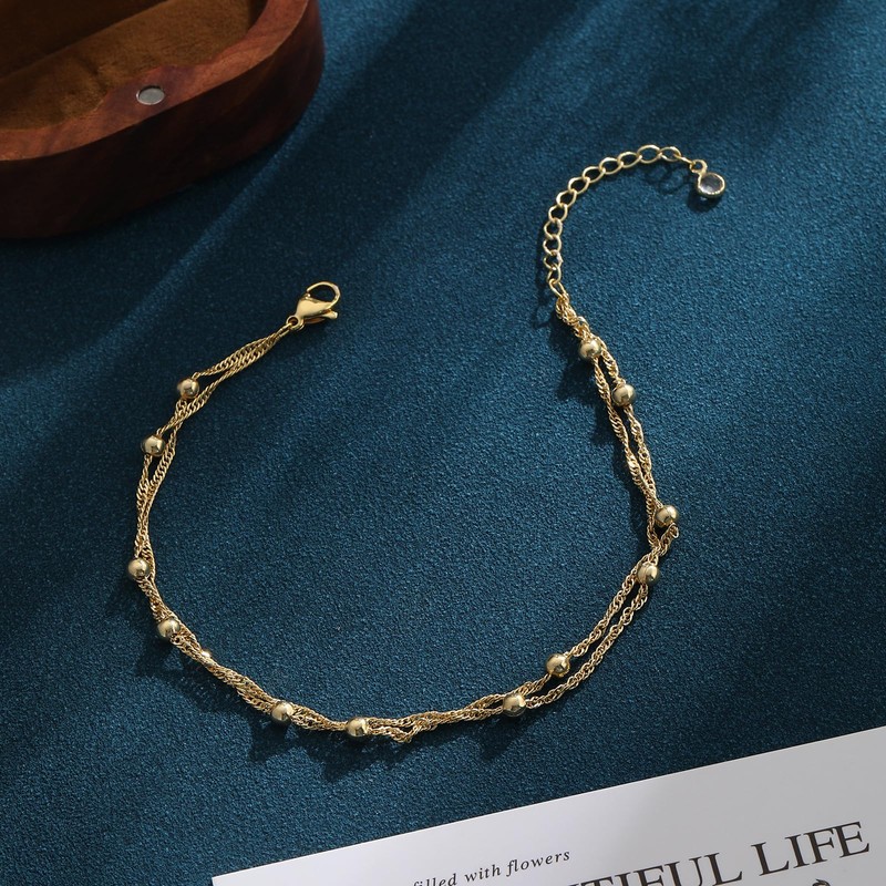 - Beaded Anklet Design: This gold anklet is water resistant and can be layered and has a trendy design