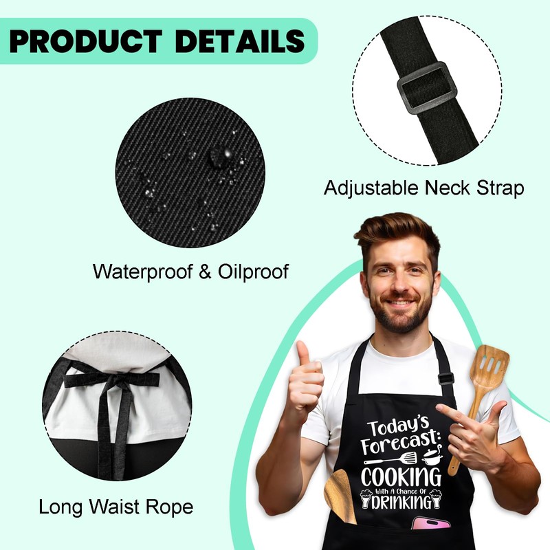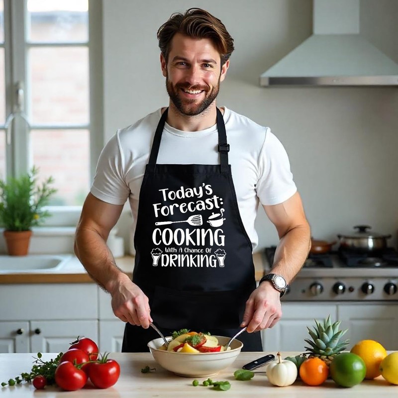 - Funny Apron Gifts: Our stylish apron features the hilarious saying - "Today's Forecast Cooking with A Chance of Drinking". The simple yet interesting text patterns will make your family and friends laugh. It's a unique apron gift for your favourite chef.