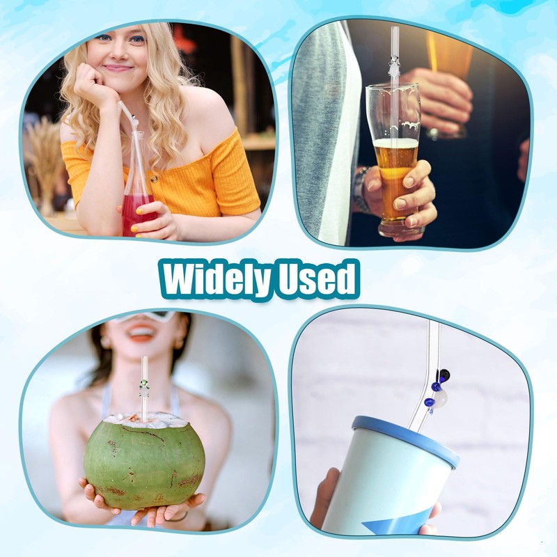 - Premium Glass Straws Set: 8 durable glass straws (20cm/7.87 inches long), including 4 straight and 4 bent straws, and 2 cleaning brushes. Each straw features a charming turtle charm, combining functionality with aesthetic appeal for your beverages.