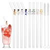 Gosknor 8pcs Reusable Glass Straws with Charms, Cute Turtle Straight & Bent Drinking Straw with 2pcs Cleaning Brush for Smoothies Iced Coffee Juice Shatterproof Aesthetic Drinkware