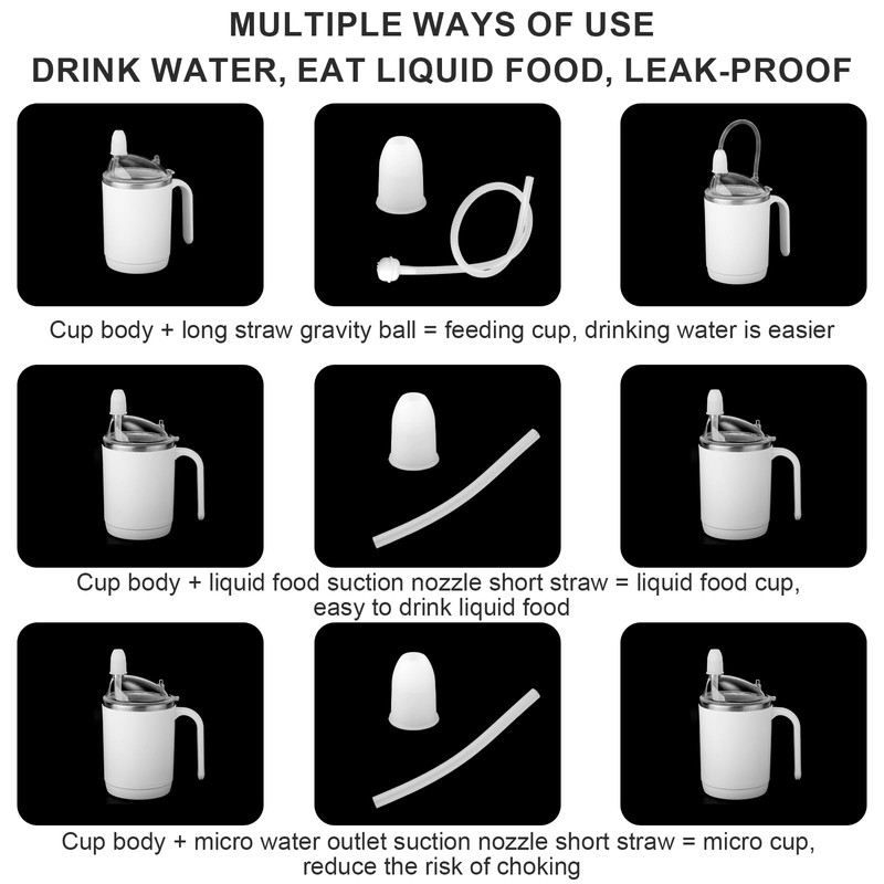 - Package Content: You will receive a set of spill proof cup for elderly, in which including a spill proof cup, a cup lid, a drinking straw, liquid food straw, straw brush, liquid food replacement mouth, and cup brush. Convenient for effortless sipping.