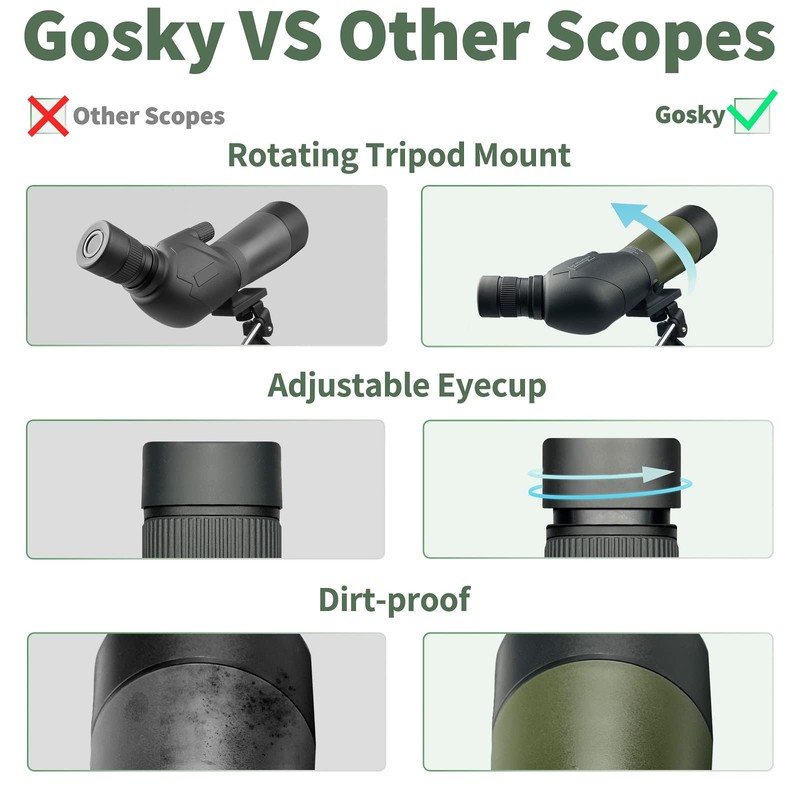 Gosky 20-60x60 HD Spotting Scope with Tripod, Carrying Bag and Scope Phone Adapter - BAK4 45 Degree Angled Spotter Scope Bird Watching Wildlife Scenery