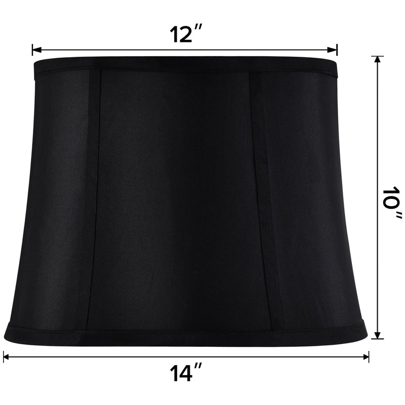 - Foldable Shade Size: Spider fitter mode,12x14x10 inch (Spider) black lampshades, top diameter 12", bottom diameter 14", straight height 10", spider washer attachment diameter: 0.41", this shade is perfect for medium-sized table and floor lamps(Harps and finials NOT included)