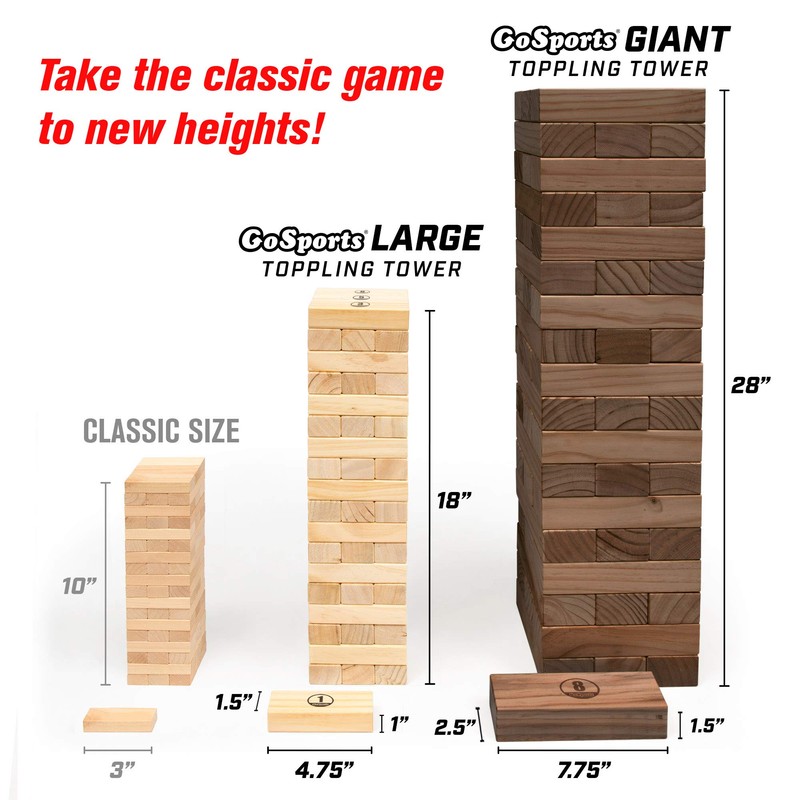 GoSports 5 ft Giant Wooden Toppling Tower - Includes Bonus Rules with Gameboard - Choose Your Style