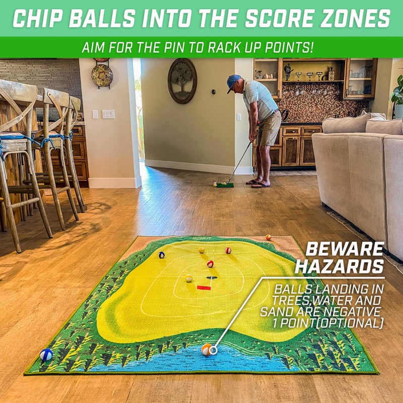 - INDOOR OR OUTDOOR FUN: Roll out the 4 x 6 ft Chip N' Stick Mat on any flat surface for instant game setup; The premium woven construction is made to roll like a real putting green - easily roll out for set up and roll up for compact storage