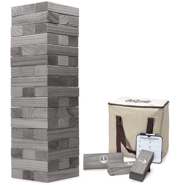 GoSports Large Wooden Toppling Tower - Stacks Up to 3 ft - Gray Wood Stain