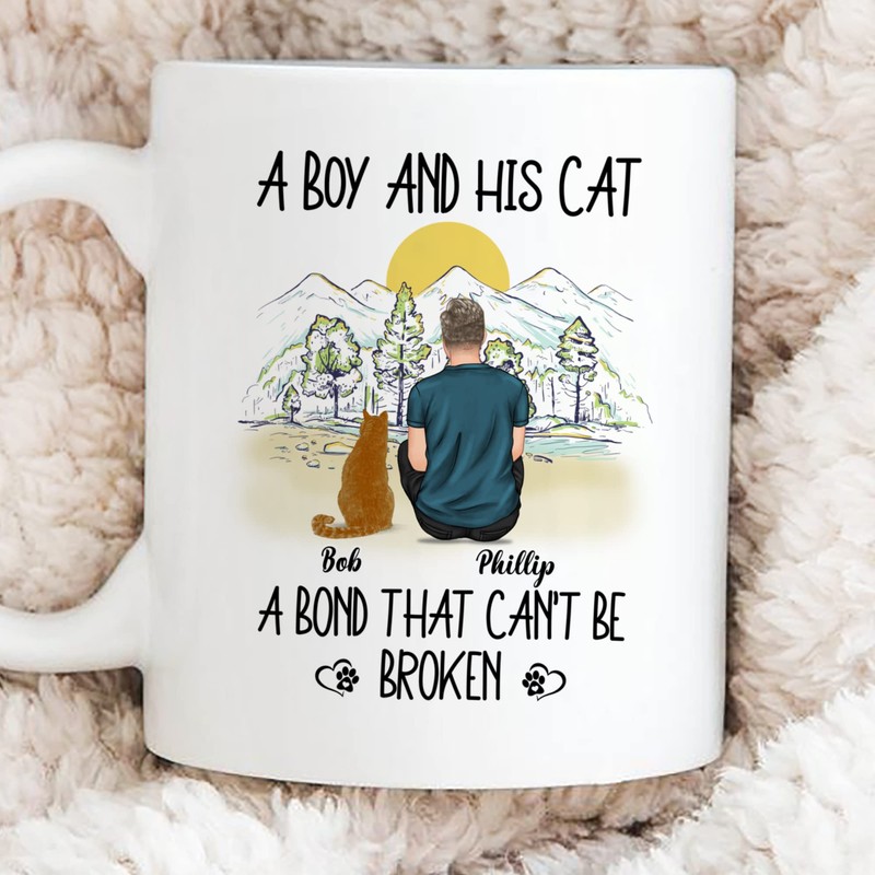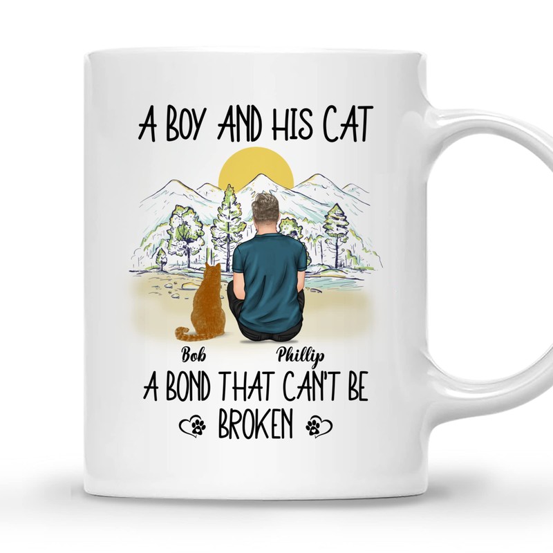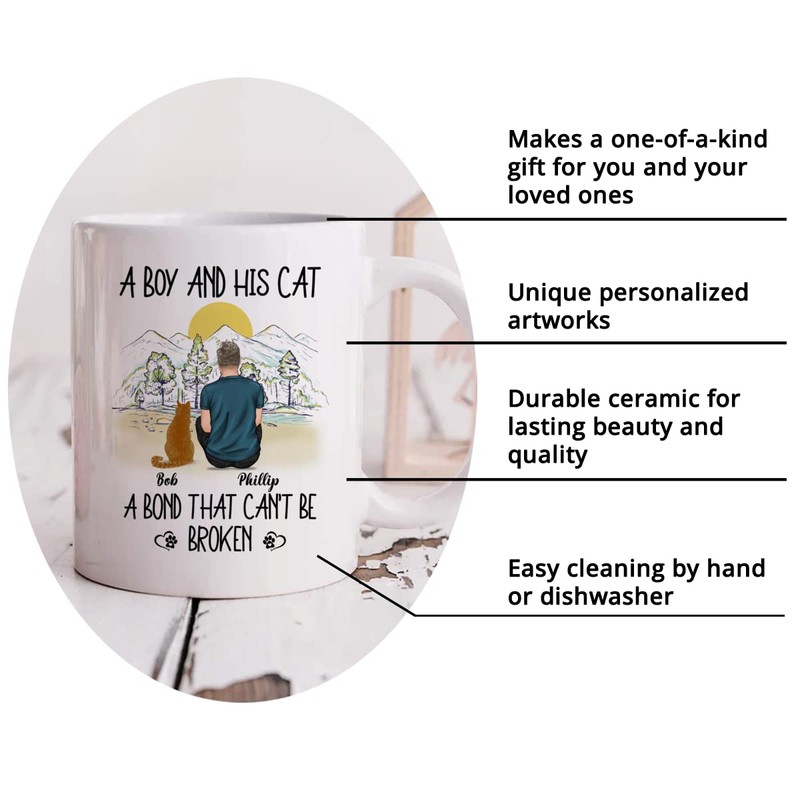 Gossby Personalized Cat Dad Mug - Custom Cat Gift for Men with Design, Name, Cat Breed - Birthday, Christmas, Fathers Day Cat Dad Gift - A Boy and His Cat - Cat Owner Mug Gift - A Bond Cant Be Broken