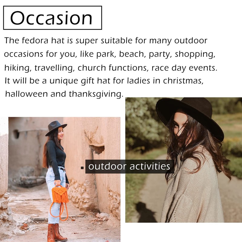 • OCCASSION: This fedora hat is suitable for any occasions, Such as Wedding, Engagement, Valentine's day, Birthday, Anniversary, Graduation, Prom, Carnival, Banquet, Father's Day, Mother's Day or a particular party.
