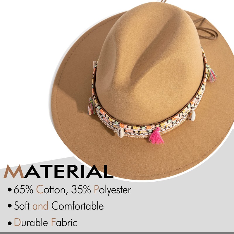 • MATERIAL: 65% cotton, 35% polyester, soft and comfortable to wear, this fedora hat with a chic boho belt buckle.